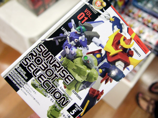 全高約90mmで、ザンボット3/スコープドッグA(ヘビーマシンガン付属)/スコープドッグB(サンサ仕様)/ランドムーバー(ソリッドシューター付属)/レイズナーA(グレネード・フレームランチャー)/レイズナーB(ウイングユニット)の全5種。1BOX12個入り。