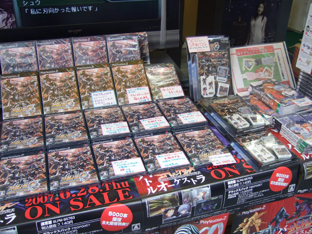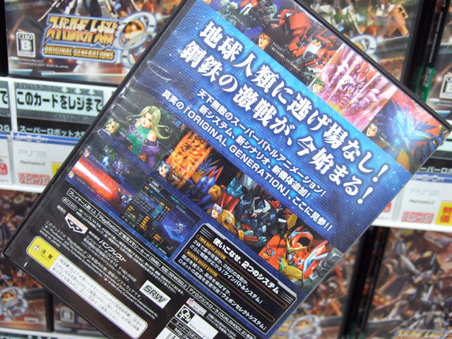 2006年4月頃にデモにひとだかりが出来ていたりしたことをお伝えしたこともある、バンプレスト「スーパーロボット大戦OG オリジナルジェネレーションズ」(AA)が、そのデモ放映から1年以上経過した2007年6月28日に発売され、アキバのゲーム取扱店などでは店頭や店内で大きく展開していました。