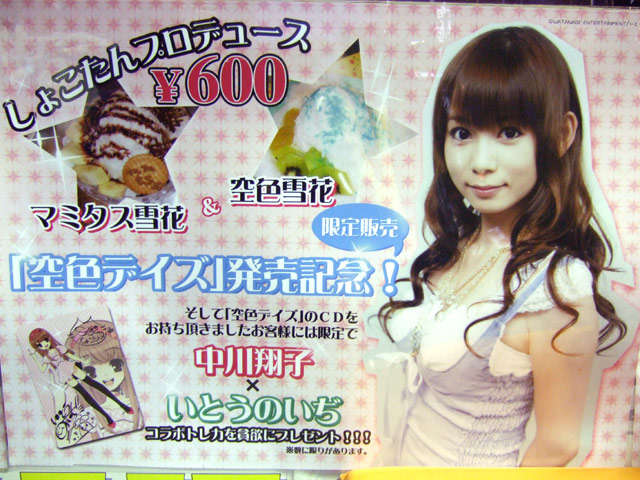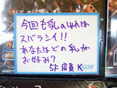 雪花の郷では、現在グレンラガンOP曲「空色デイズ」(AA)の発売記念キャンペーンで、しょこたん考案メニューを食べ、その際に 「空色デイズ」のCDを見せるといとうのいぢ氏描き下ろしのしょこたんトレカがもらえるキャンペーンをやっていて、そのつながりなのか、スパロボOGの中川翔子さんヴァルシオーネコスプレスタンドPOPがおかれていました。