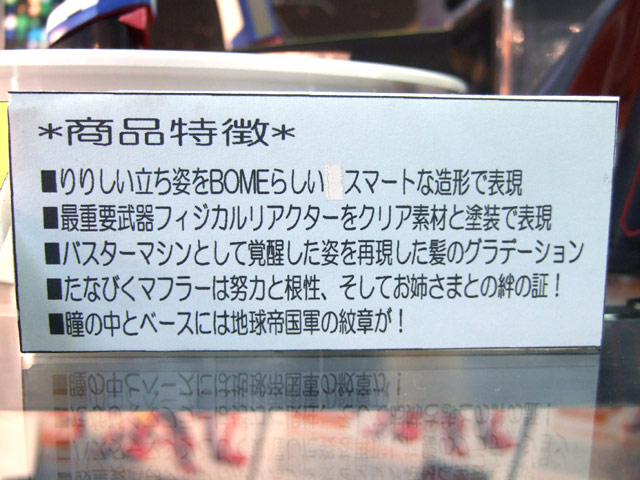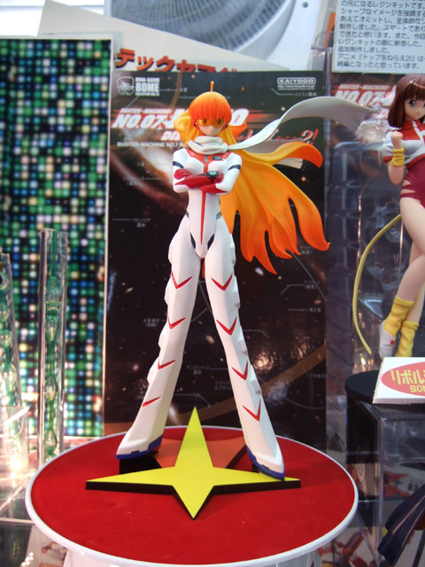 これは、以前同様にサンプル展示をお伝えした「セイバー」(AA)に続く、BOME氏原型のフィギュアシリーズ「MON-SIEUR BOME COLLECTION」の第24弾となるもので、アニメ「トップをねらえ2!」の「バスターマシン7号」を立体化したものです。