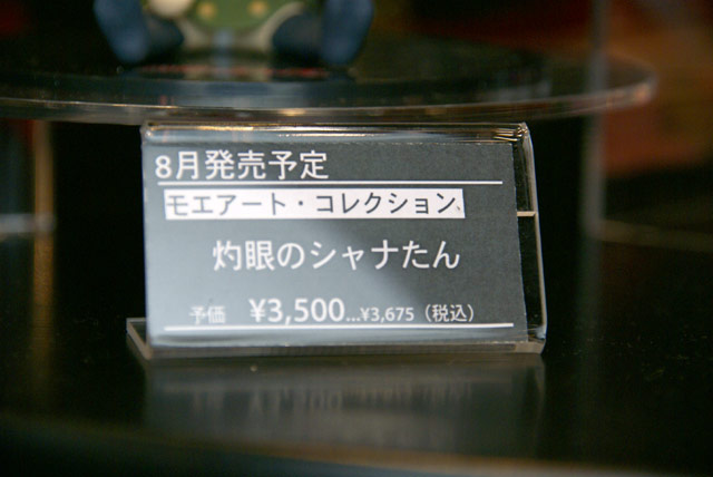 東京おもちゃショー2007ジュンプランニングブースでは、「TJ GrosNet限定 モエアート・コレクション 灼眼のシャナたん」(RA)のサンプルが展示されていました。これは、アニメ「灼眼のシャナ」の番外編(?)としてコミックの特典などで付属していた「灼眼のシャナたん」(youtube)の、ちっこくなったシャナを立体化したもので、販売はTJ GrosNet限定となるみたいです。