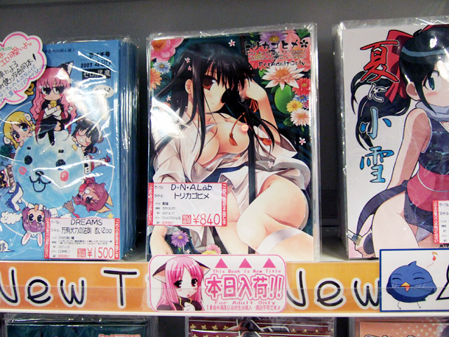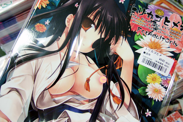 ソリッドシアター公式で「着物の女の子 五十鈴 紬」(AM)(参考サンプルレビュー)の描き下ろしマンガも掲載されている、ミヤスリサ氏のサークルD・N・A.Lab.の、サンクリ36で頒布された同人誌「トリカゴヒメ」が、アキバで発売しています。これは、銀魂の男装の剣豪・柳生九兵衛が、銀魂に舐められたりほぐされたり奥のほうをぐりぐりされちゃったりする、大人向け同人誌。