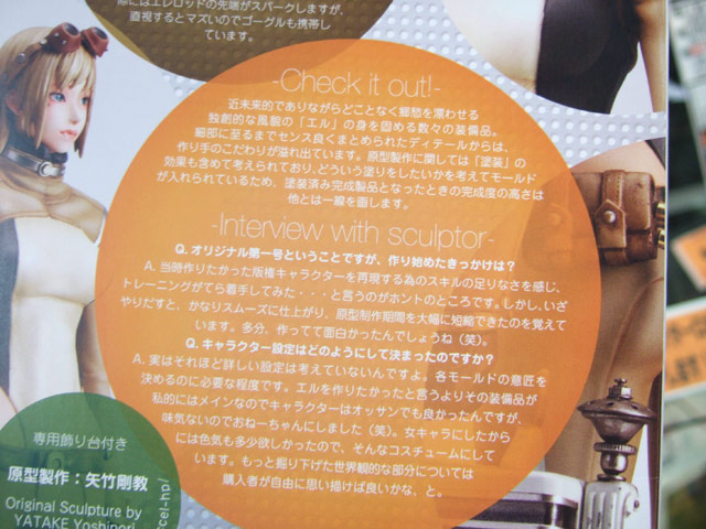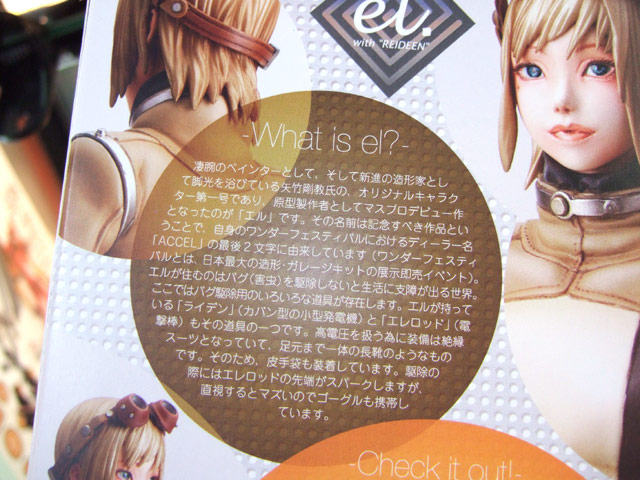 他、パッケ裏面の原型師インタビューでは「エルを作りたかったと言うよりその装備品が私的にはメインなのでキャラクターはオッサンでも良かったんですが、味気ないのでおねーちゃんにしました(笑)。」ともコメントされていて、一歩間違えばオッサンだったのかも?w