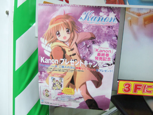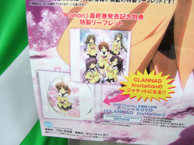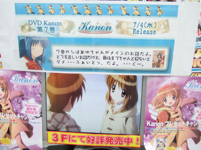 ほか、1Fのデモモニターに掲示されていた、8巻発売告知ポスターによると「Kanon」プレゼントキャンペーンとして、「Kanon 8巻」(AA)購入者に、特製リーフレットをプレゼントするみたいです。