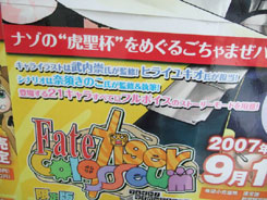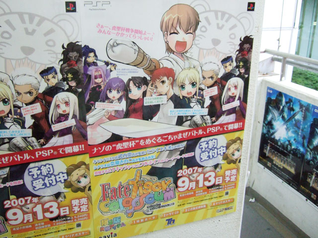 9月13日発売予定の、CAPCOM「フェイト/タイガーころしあむ」(AA)のポスターの掲示がアキバで開始しています。他、「C3×HOBBY キャラホビ2007」のチケット販売開始とか、CD「The Best of Tales(初回限定盤)(DVD付)[Compilation] [Limited Edition]」(AA)、DVD「JAM Project JAPAN CIRCUIT 2007 Break Out」(AA)の発売の様子等をお伝えします。