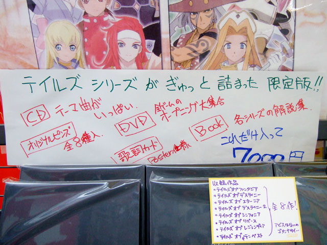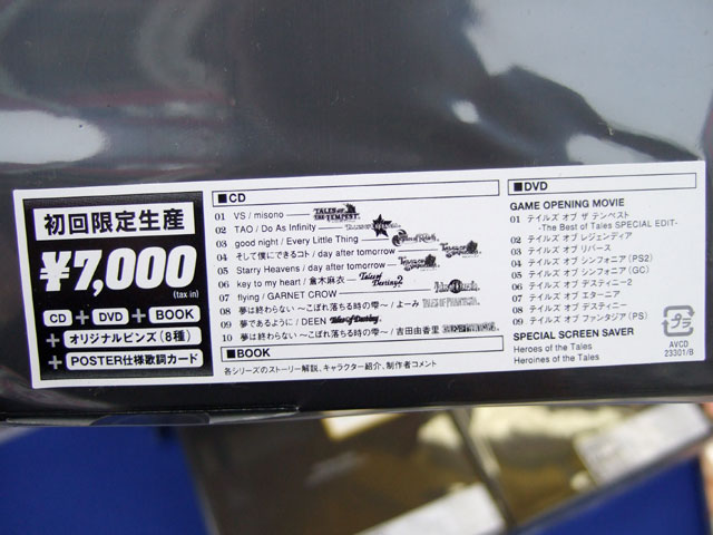 ゲーマーズ本店などのCD取扱店では、Wikipediaによると「『テイルズシリーズ』初のテーマ曲集であり、レーベルを越えての実現」という、テイルズシリーズ歴代主題歌を収録した、初のテーマ曲集という、CD「The Best of Tales(初回限定盤)(DVD付)[Compilation] [Limited Edition]」(AA)が発売されていました。