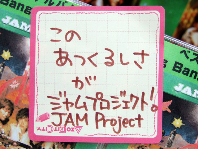 ゲームシティ店頭では、DVD「JAM Project JAPAN CIRCUIT 2007 Break Out」(AA)とCD「JAM Project BEST COLLECTION V 」(AA)が発売されていました。