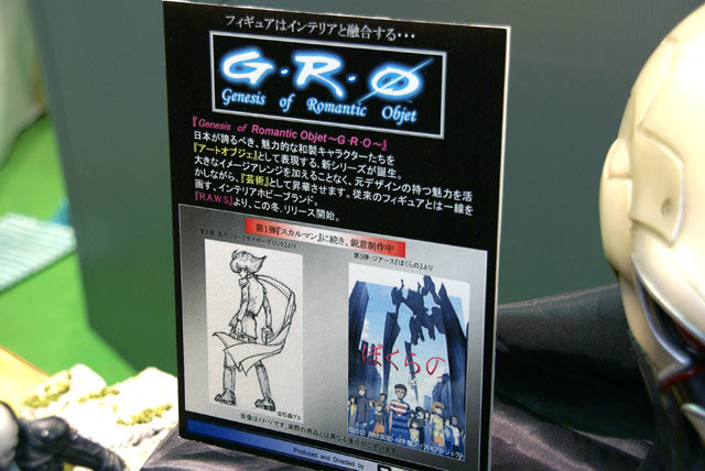 これは、石ノ森章太郎氏原作のアニメ「スカルマン」の「スカルマン」を立体化したもので、掲示されていたPOPによると「日本が誇るべき、魅力的な和製キャラクターたちを『アートオブジェ』として表現する、新シリーズが誕生。大きなイメージアレンジを加えることなく、元デザインの持つ魅力を活かしながら、『芸術』として昇華させます。従来のフィギュアとは一線を画す、インテリアホビーブランド。」という「Genesis of Romantic Object〜G・R・O〜」の第1弾として発売されるものです。