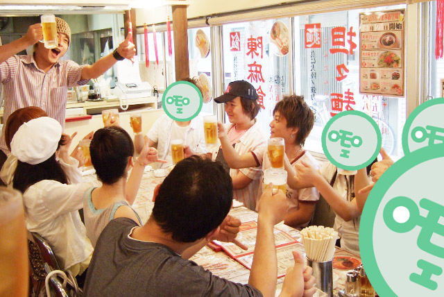 たくさんの方がレポーターを務めましたが、その中でも好評だったツートップのレポータームートンと連戦姉妹の二組の芸人さんと一緒にアキバハッピーガイドの総集編を鑑賞。