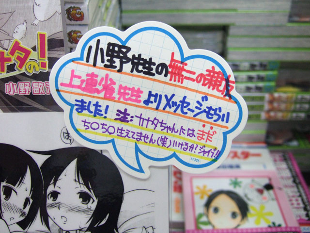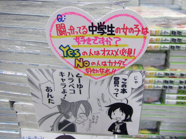 ほか「闘ってる中学生の女の子は好きですか?YESの人はオススメ必見!NOの人はカナタで好きになれ!!」というPOPもありました。