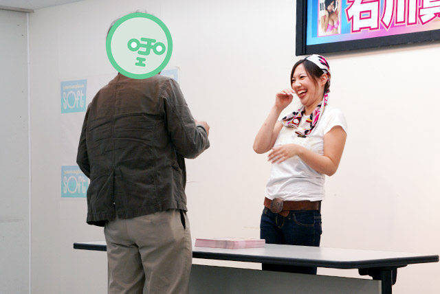 100センチを誇るIカップバストを持つ 巨乳系グラビアアイドル石川真琴さんの5作目のDVDとなる「Busty Beauty」(AA)の発売を記念した握手会が、ヤマギワソフト館にて 7月8日開催されました。気さくで明るい雰囲気の中「最初は苦しかったけれど だんだん体になじんできて 気持ち良かった」「これって現像してもらえますか?」等の衝撃的な発言も飛び出した握手会でした。