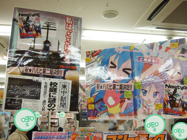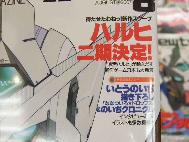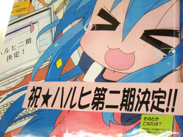 紙面では、7月7日に新聞広告で発表された「ハルヒ二期決定」の特集がされていて、ゲーマーズ本店では「祝★ハルヒ二期決定!!」として大きく引き伸ばしたサンプルページのPOPを掲示していました。