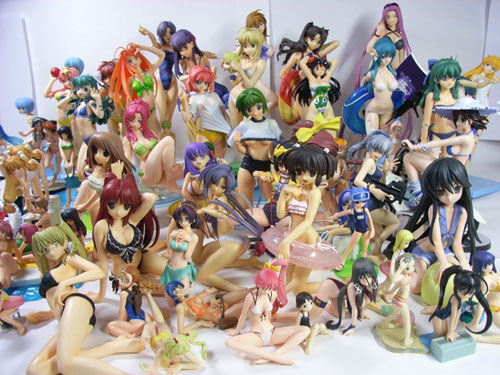 手持ちのフィギュアから水着系を重ね置いたケースから全部引っ張り出して撮影してみました。全体数の1/5位の量で、今更ながら驚いた…もっと多い人もいるんでしょうね…