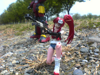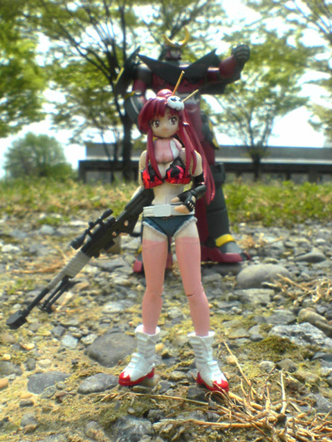 グランラガンのヨーコに惚れて、やっつけですが改造してしまいました。ライフルを作る時間が無かったので他キャラの借り物です。元はリボルテックのレビィなので、一応稼動します。(顔がCM’s顔なので、元のキャラがバレバレですが。w)グレンラガンは応募写真のために買いました。w