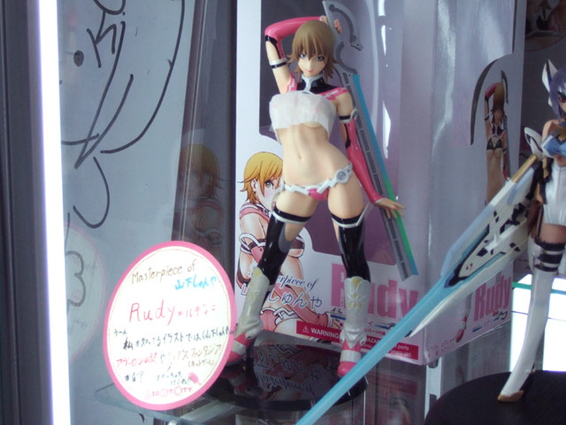 7月11日、アオシマ「Funny Knights 1/7 ルディ 通常版」(AM)が発売されました。これは、山下しゅんや氏の描き下ろしイラストを元に立体化した、以前とらでの剥いた展示をお伝えしたように、乳パーツの差し替えで、おっぱい丸出し状態にも出来る、アオシマの新ブランドFunnyKnightsの第1弾となるものです。キャラシティでは、乳部分を白い紙で隠した展示が開始。