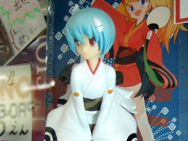7月13日、セガプライズ「エヴァンゲリオン EXフィギュア まつりのよるに feat.okama」(RA)がハビコロ玩具にて入荷していました。これは、2006年7月に発売された「EXフィギュア まつりのよるに」(参考レビュー)の元となったokama氏の描いたミニスカートスタイルの浴衣のイラストに忠実なラインで、前作も原型製作されたzenko氏(硫黄泉)が再立体化したバージョン違い。