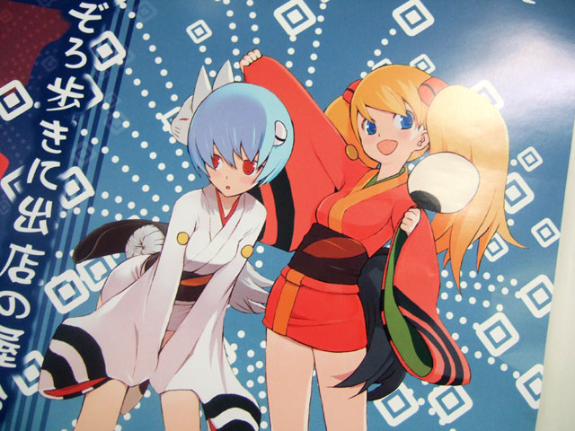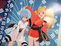 告知ポスターには、元となったokama氏のイラストも掲載されていて、キャッチコピーでは「そぞろ歩きに祭りの屋台 わた菓子、たこ焼き、林檎飴! まつりりのよるの おたのしみ♥」とかかれていました。