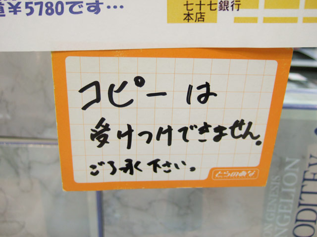 また「コピーは受けつけできません。ご了承下さい。」ともかかれていました。