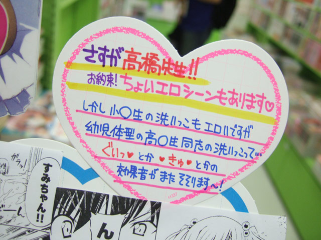 パンツ全開シーンはもちろん、「小○生の洗いっこもエロいですが幼児体型の高○生同士の洗いっこって・・・ぐいっ♥とか♥きゅ♥とかの効果音がまたそそります〜!」とPOPにかかれていたお風呂シーンなどもあるみたいですw