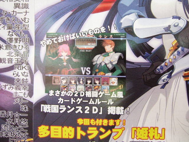 POPによると他にも、「まさかの2D格闘ゲーム風ルール」という、「戦国ランス2D」や、特別付録「姫札」(多目的トランプ)を使用した「戦場か!?手札か!?配備しだいで選曲が変化する!」という「デュアルレンジャールール」が掲載されていたりもするみたいです。