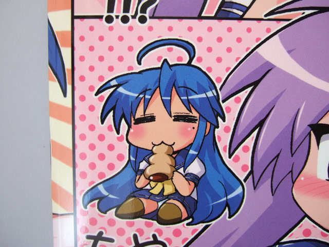 裏表紙にはチョココロネかじっているこなたと飛んでるつかさのディフォルメイラストも。