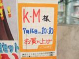 他、購入された2名の方のイニシャルと、購入された日時も掲示されていて、それによると「K・M様 7月16日AM10:10 お買い上げ」「S・I様 7月16日PM3:37 お買い上げ」とのこと。