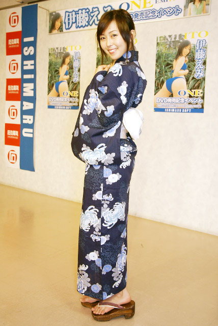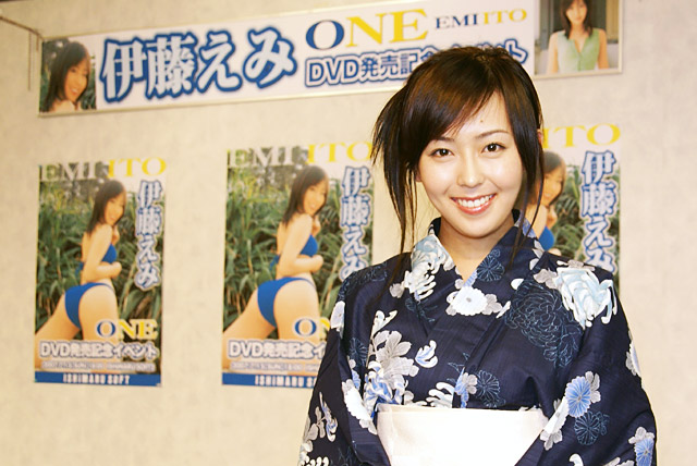 BREAK A LEG所属の”美尻系知的グラビアアイドル”という伊藤えみさん。動画ブログ「伊藤えみのONEクリック!」や、オフィシャルブログ「伊藤えみのすっぴん広場DX」も意欲的に更新されている彼女の 4作目のDVDとなる「ONE」(AA)の発売記念イベントが、石丸電気にて7月15日に開催されました。特技は生け花という大和撫子なだけあって、浴衣姿がとてもお似合いでした。