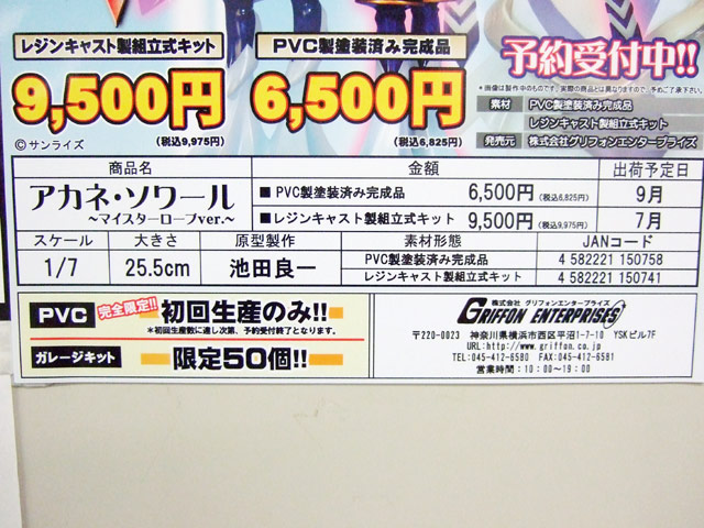 発売は、POP掲載の詳細データによると、ガレージキット版(AM)は限定50個で7月予定。PVC版(AA)が初回生産のみで9月予定となっています。