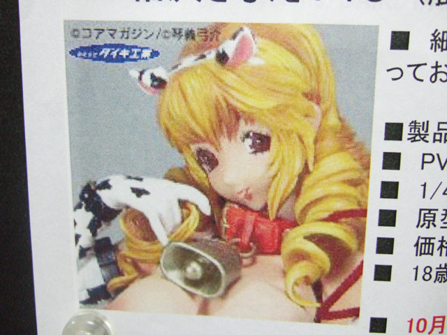 PVCサンプル画像公開もされた、ダイキ工業触乳2 相沢さなえ」(AM)の予約受付がアキバで開始してます。これは、大人向けコミック「触乳 2」(AA)に登場する「相沢さなえ」を、「具」ありフィギュアのディアナモルテの片桐克洋氏が立体化したガレキを、一部改修してPVC化したもの。Vispo nikkiさんでは「社長はまだ諦めてないみたいなので、ナニ化を期待」とのことw