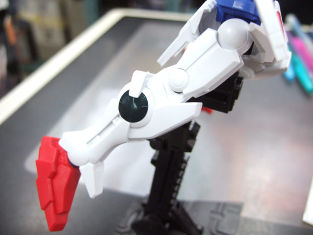 新設計のポリパーツによりヒジも可動。このポリパーツは挟み込みではなく、始めから後ハメ式で、塗装にも便利です。