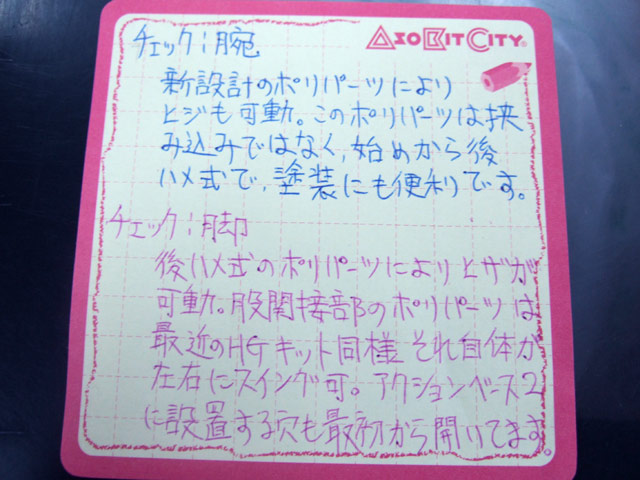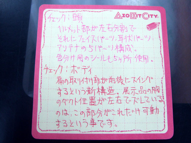 また、掲示されていたPOPによると「ニッパ不要のタッチゲート採用。頭、腕、足、身体の各パーツをブロック感覚ではめ合わせれば完成!」とのこと。