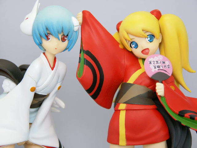 セガプライズ「プライズ エヴァンゲリオン EXフィギュア まつりのよるに feat.okama」(RA)のレビューです。2006年7月に発売された「EXフィギュア まつりのよるに」(参考レビュー)とは似て非なる、ものすごいぷにぷにな一品w この1年の技術の成長(?)で、前作は一体成型だったパンツとミニスカ部分が今回別パーツで、デフォでは無理ですが、キャストオフも一応可能でしたw