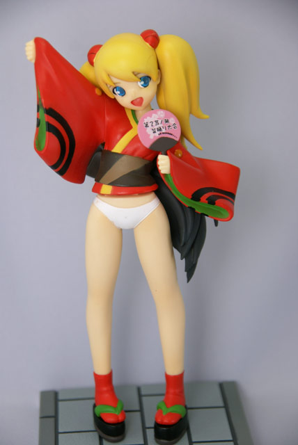 これは、2006年7月に発売された「EXフィギュア まつりのよるに」(参考レビュー)の元となったokama氏の描いたミニスカートスタイルの浴衣のイラストに忠実なラインで再立体化したバージョン違いとなるもので、セガプライズの商品説明によると「人気イラストレーターokama氏のイラストをそのまま立体化したキュートなフィギュア。丈がミニの浴衣も◎。」と紹介されています。