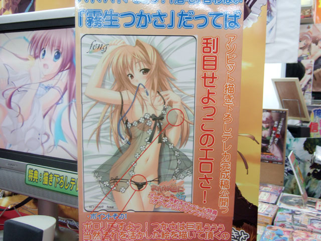 7月27日発売予定の、fengのエロゲ「あかね色に染まる坂」(AA)ですが、ゲームシティB1エロゲコーナーにて、「刮目せよっこのエロさ!」とし、アソビット特典「霧生つかさテレカ」サンプル画像が公開されてました。POPよると乳は「ポロリですよっ!つかさは巨乳ぅぅぅ」で、パンツ部分は「ちょっ、なんか見えてる様な気が・・・・・・」とのことです。確かに見えているような気も?w