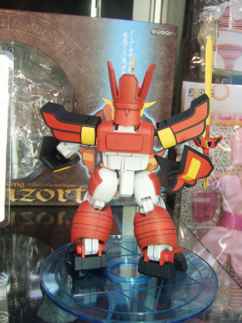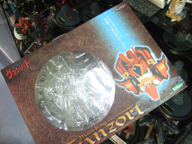 これは、ワンダフェス2007冬のコトブキヤブースでもサンプル展示のあった、アニメ「魔動王グランゾート」の主人公機「グランゾート」を変形可能なアクションフィギュアとして立体化したコトブキヤの新シリーズ「S.U.G.O.Iアクションギュア」シリーズ第2弾となるもので、コトブキヤの商品詳細によると「「サンライズの大人気(ファンタジー系)ロボットアニメ『魔動王グランゾート」より、【光の三魔動王】の1機、 地と火を司る魔動王『グランゾート』が、S.U.G.O.Iアクションギュアにて登場!! グランゾート召喚時のフェイスモードから人型のバトルモードへの変形も見事に再現!! グランゾートが操る「地の神の剣」である【エルディカイザー】が付属致します!!! 往年の、熱き想いを持った『ゾーター』に贈る、コトブキヤ至極のプレゼント!」と紹介されています。