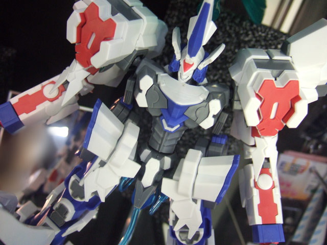 これは、以前、宮沢模型展示会2007年春等でもサンプル展示のあった、ニトロプラスのPCゲーム「斬魔大聖デモンベイン」に登場するメカ「デモンベイン」をプラモとして立体化したもので、コトブキヤの商品説明によると「2003年に発売され、コミック、ノベル、コンシューマー、アニメと様々なメディアで展開したニトロプラスの大人気PCゲーム「斬魔大聖デモンベイン」より、主人公が駆る【魔を断つ剣】「デモンベイン」が、ついにプラモデルキット化!脚部前面を覆うように突き出たシールドなどの特徴的なシルエットを見事に再現! この細かなディテールはもはやプラモデルの域を超えています!! また、二挺の魔銃クトゥグア&イタクァが付属武器として同梱。劇中の名シーンを再現しよう!パッケージアートは、ニトロプラスの3Dチーム・ポリゴン番長の手による描き下ろしです!」と紹介されています。