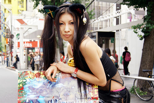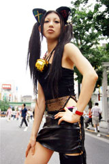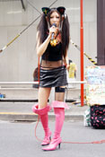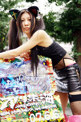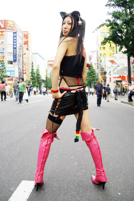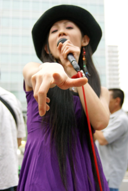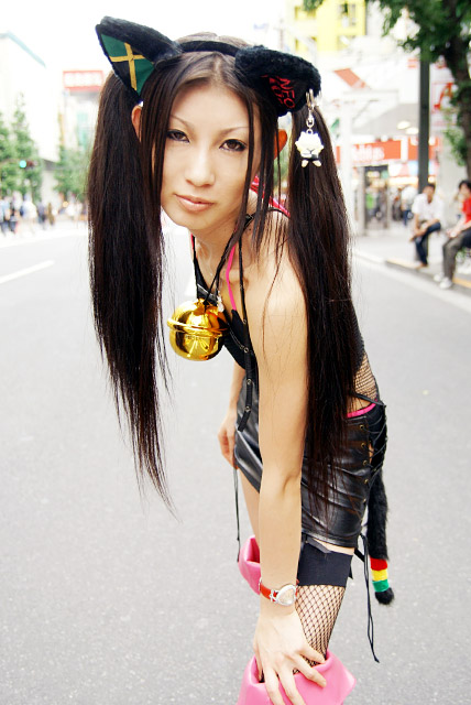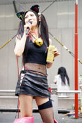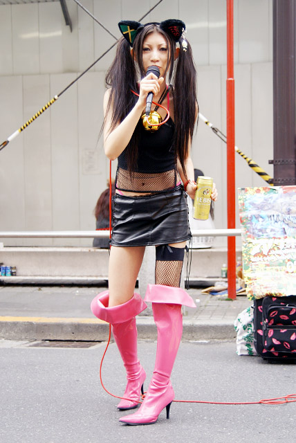 魔女っ子風やクラブ系ワンピース姿の路上ライブ風景を撮らせていただいたことのある、アニメ+レゲエ=アニレゲエの通称「うずめ閣下」が この日はセクシーランジェリー着用な猫耳姿で路上ライブを行っていました。