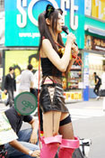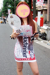 7月22日のアキバは、猫耳にTバックだったuzume AKA disco Devilさんや、涼宮ハルヒのコスプレ姿だった森山花奈さん他、舞台ケンコー全裸系水泳部 ウミショーの告知に”アッキーナ”こと南明奈さん達がいらしてたり、にぎやかな様子でした。画像は”正統派メイド喫茶” オリジナルプロモーションDVD「メイドカフェ発表会−Cafe-1」の告知活動されてたバドガール姿の女性。