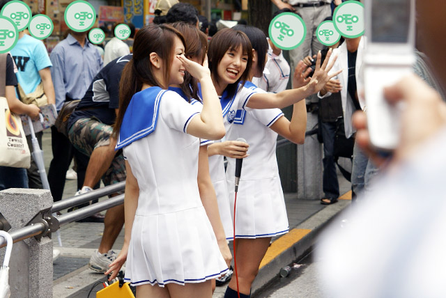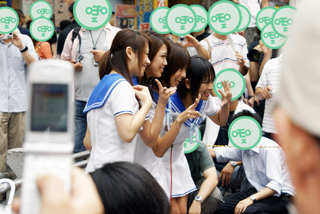 いつもはヨドバシ前のロータリーで活動されているようですが、この日は歩行者天国にて行っていたため、ライブの合間は撮影会のような状態になっていました。