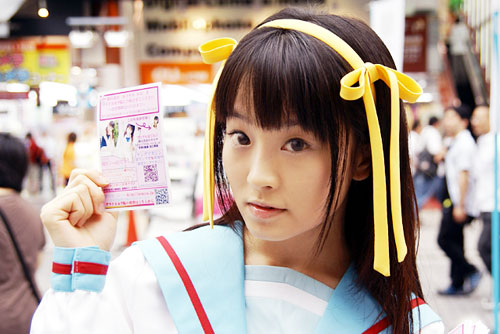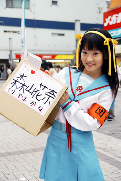 1stDVD「ハツカナ」発売記念イベントの様子をお伝えした、グラビアアイドルの森山花奈さんが、涼宮ハルヒのコスプレ姿で告知活動をされていました。