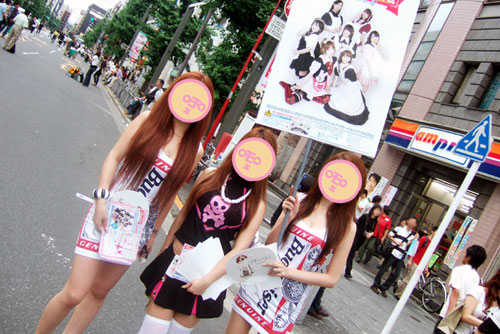 カフェメイリッシュ、カフェドール東京、シャッツキステ、ロイヤルミルク、ミアカフェ、Cute-M、ぴなふぉあの正統派メイド喫茶7店舗による オリジナルプロモーションDVD「メイドカフェ発表会−Cafe-1」が7タイトルが8月31日までの期間限定発売ということで、その告知活動をバドガール姿の方々が されていました。