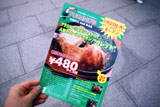 スタッフブログによると、7月23日(月)、24日(火)、25日(水)の3日間限定で、「モモ肉のガレット ライス付 通常¥480→¥300」「ランプステーキ ライス付 通常¥880→¥600」「1ポンドステーキ ライス付 通常¥1380→¥880」「ビール・ワイン 通常¥500→¥200」で販売するみたいです。
