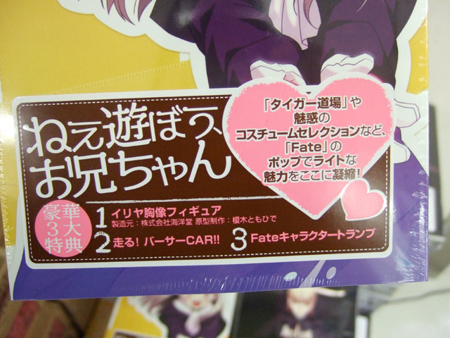 ファンブック+バーサーCAR、イリヤ胸像フィギュア、Fateキャラクタートランプが付属。
