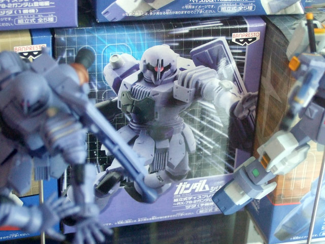 バンプレストプライズガンダムシリーズ組立式ディスプレイモデル RX-78-2 ガンダム登場編」(RA)が、ハビコロ玩具にて24日には入荷していました。これは、ガンダムのMSを固定ポーズで立体化したディスプレイモデル。ガンダム登場編ですが、RX-78-2ガンダム、ヘイズル改:T3部隊実験カラー、ジムブルーディスティニー1号機、ヅダ:1番機、ヅダ:予備機の全5種類。