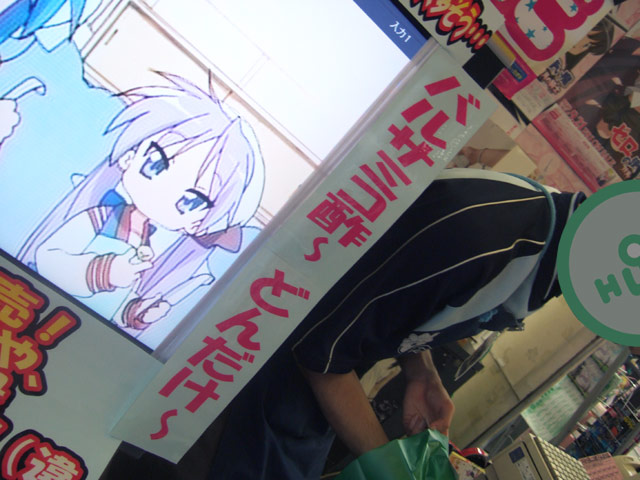 7月26日、DVD「らき☆すた 2巻」の「限定版」(AA)と「通常版」(AA)2種が発売されました。1巻発売時には「チョココロネ積んでるセブンがあったら俺んちかも」というPOPもあったゲーマーズ本店のデモモニターのPOPでは『「みゆきさん、GJ!」の3話や、某交替劇のあった第4話収録今回もこなたはフルドライブ!(違』の他「ばるさみこ酢〜」や「神岸じゃないですぅ・・・」などもw