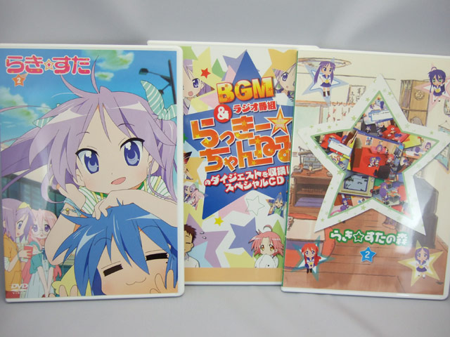 今回も本編DVD、BGM&ラジオ番組「らっきー☆ちゃんねる」ダイジェストCD、ミニゲームCD-ROM「らき☆すたの森2」が、それぞれお薄型アマレイトールケースに収められていました。