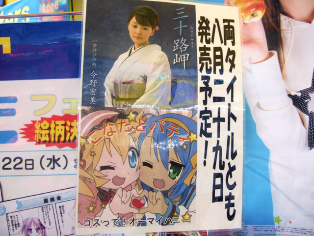 他、ゲーマーズ本店のPOPによると、8月29日には、第16話のED曲にもなった、小神あきら(今野宏美さん)がうたうド演歌「三十路岬」と、これまた16話の劇中で登場した「コスって!オーマイハニー」が8月29日に発売されるそうです。