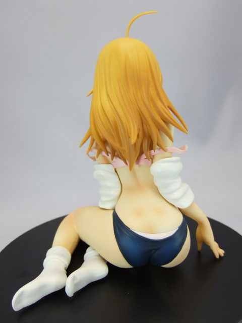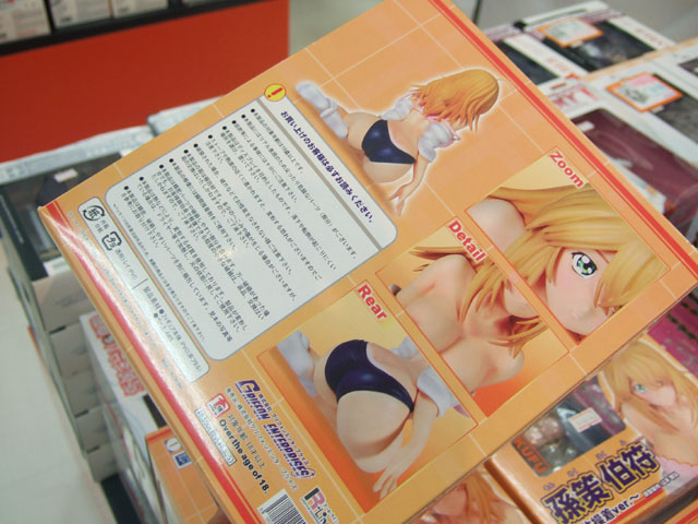 これは、以前WHF有明16で、ガレキサンプル展示もあった、「一騎当千」の孫策伯符を、なぜか半脱ぎの体操服姿で立体化したもので、Amazonの商品説明によると「グリフォン”R-Line”より、一騎当千シリーズが遂にPVC完成品で登場!脱ぎかけの体操着&ブルマと脱がし可能なブラを是非ご堪能ください!」と紹介されています。
