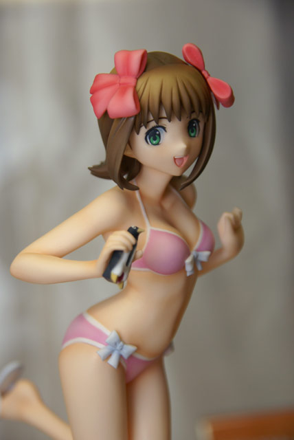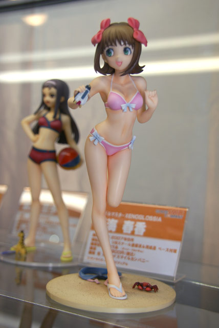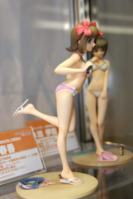 これは、ワンフェス2007冬でPOPのみ展示されていた、グッスマのアニメ「アイドルマスター XENOGLOSSIA」のキャラ立体化シリーズの第1弾で、グッスマの商品説明によると「リボンがチャームポイントの元気娘!大人気の原作『THE IDOLM@STER』から、設定を大胆にアレンジして放映中のアニメ『アイドルマスターXENOGLOSSIA(ゼノグラシア)』。「iDOL(アイドル)」と呼ばれるロボットのマスター(パイロット)でヒロインの「天海春香」を水着姿で立体化しました!大好きなペンギン型の携帯電話を片手に浜辺ではしゃぐ無邪気な姿は、少女らしい可愛さと健康的な魅力がいっぱいです。」と紹介されています。