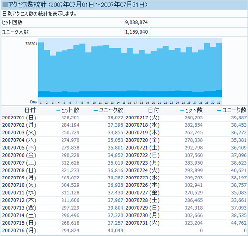 総ヒット数は903万8874。総ユニーク数は115万9040でした。トップページへのアクセス167万2946PV。(内、新環境トップは164万4414、旧ライブドアブログトップは2万8532)